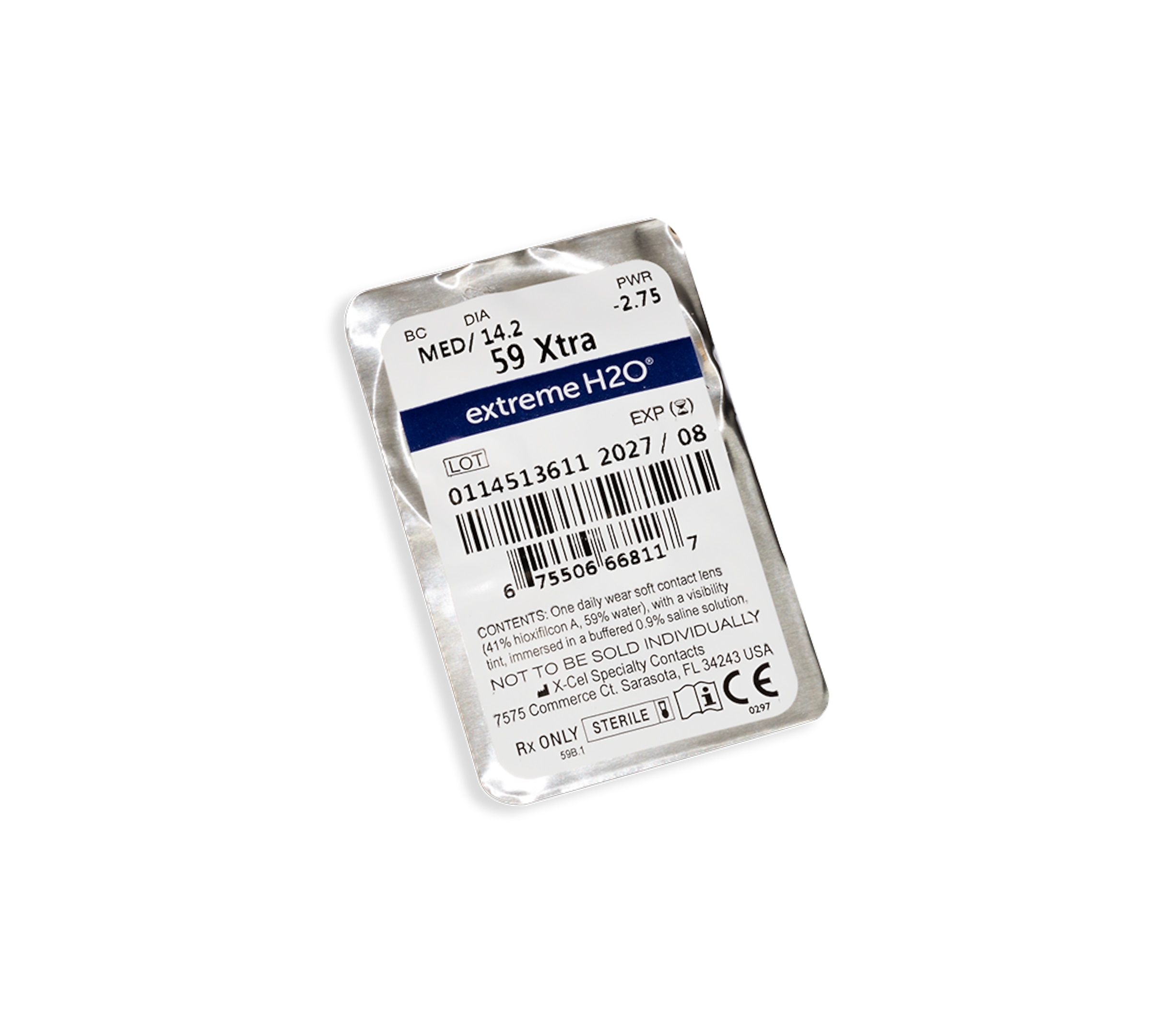 Extreme H2O 59 Xtra contactlenzen zijn zachte maandlenzen. Deze lenzen zijn ontworpen om je ogen optimaal te hydrateren. De lenzen behouden namelijk 99% van hun watergehalte, waardoor je ogen de hele dag gehydrateerd blijven. De lenzen zijn gemaakt door X-Cel Specialty Contacts (voorheen Hydrogel Vision Corporation).